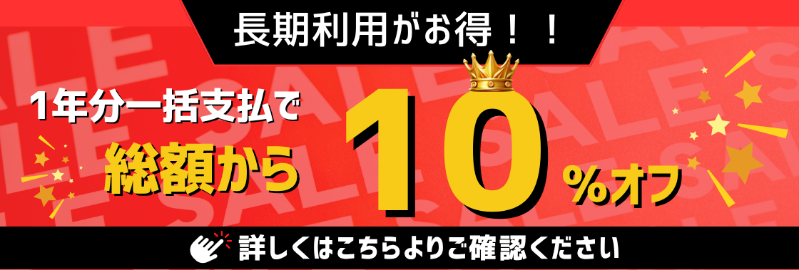 初期費用お支払い時に1年分利用料をあわせて一括支払いしていただけますと